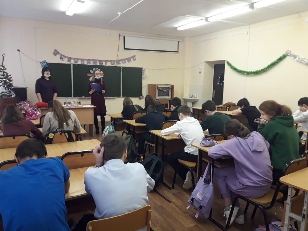 20 декабря 2021 г. психологи службы семьи в Дуванском районе и КРП «Радуга» Усова Н.В. и Баишева М.Н. провели занятие с элементами тренинга в 7 В классе МБОУ гимназии с. Месягутово.