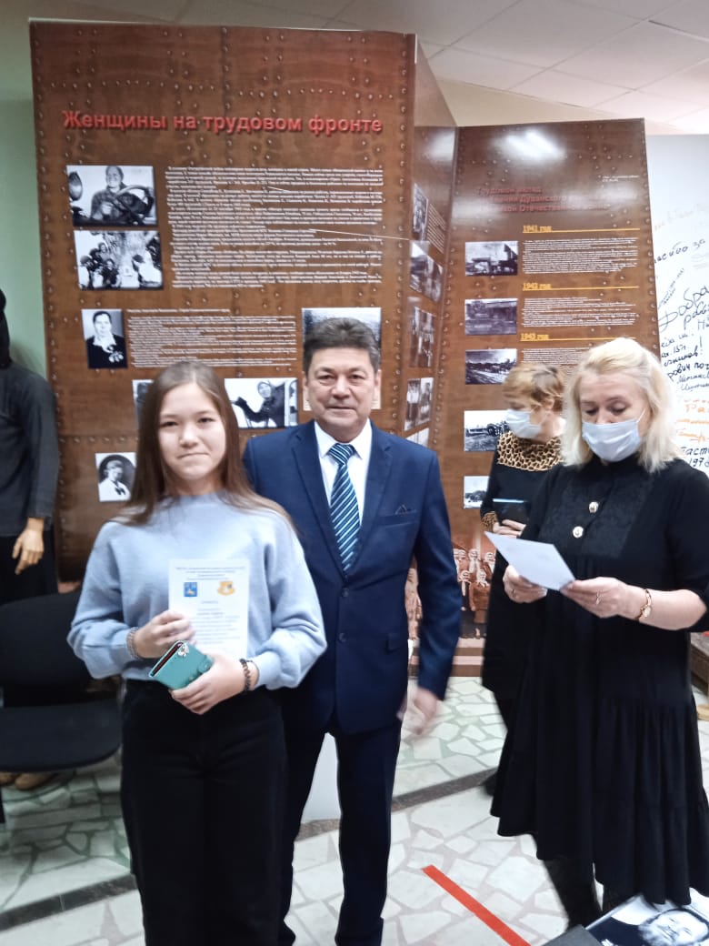 Награждена грамотой за отражение темы "Дети войны" Аюпова Зарина ученица 7а класса