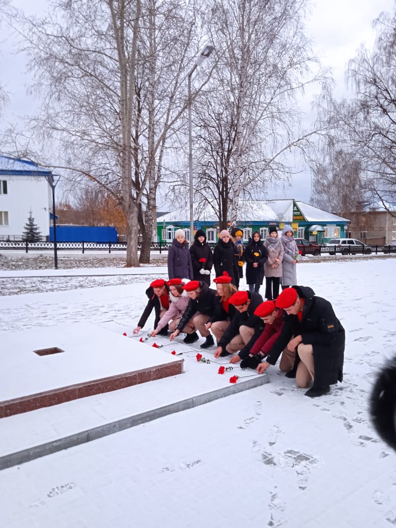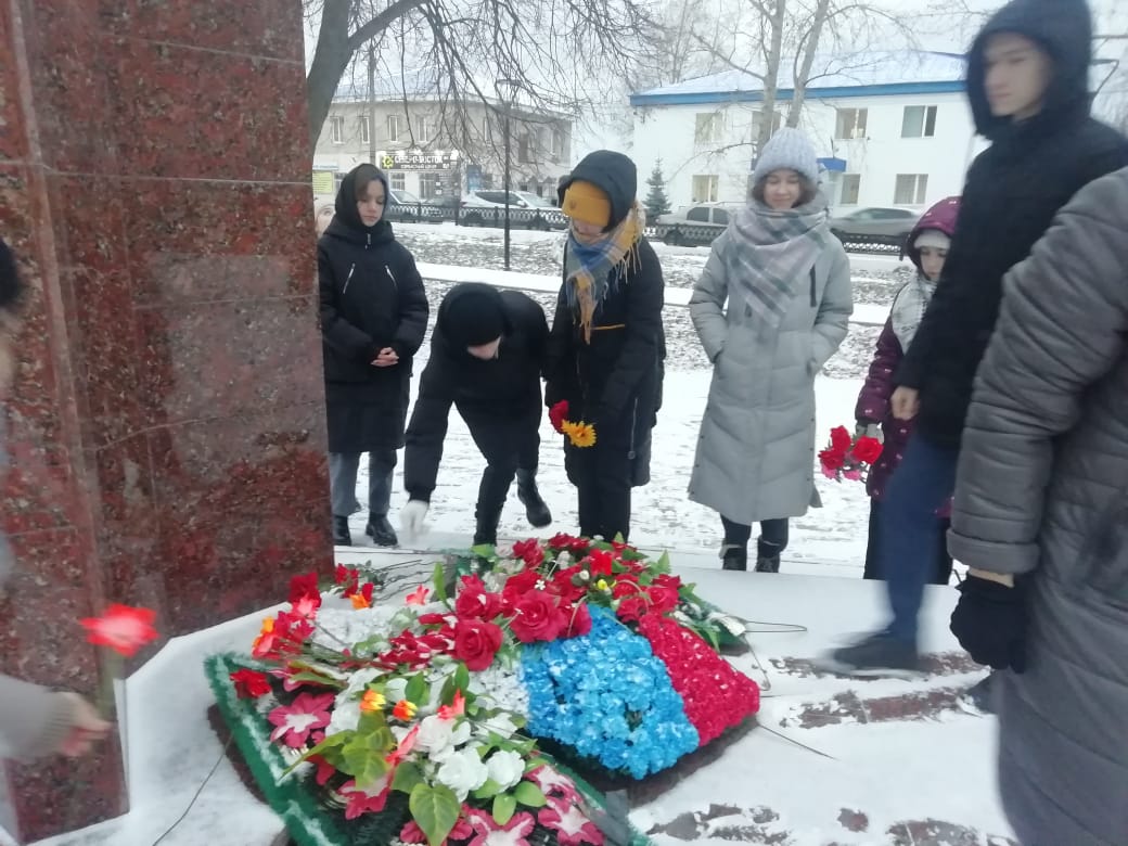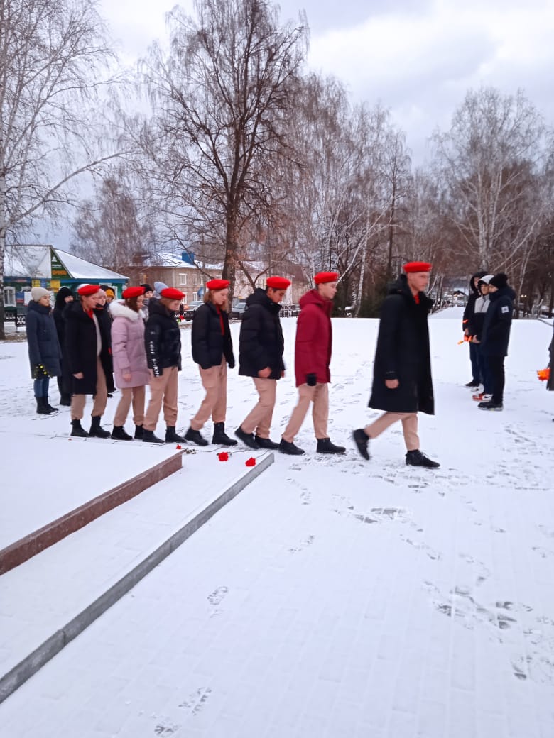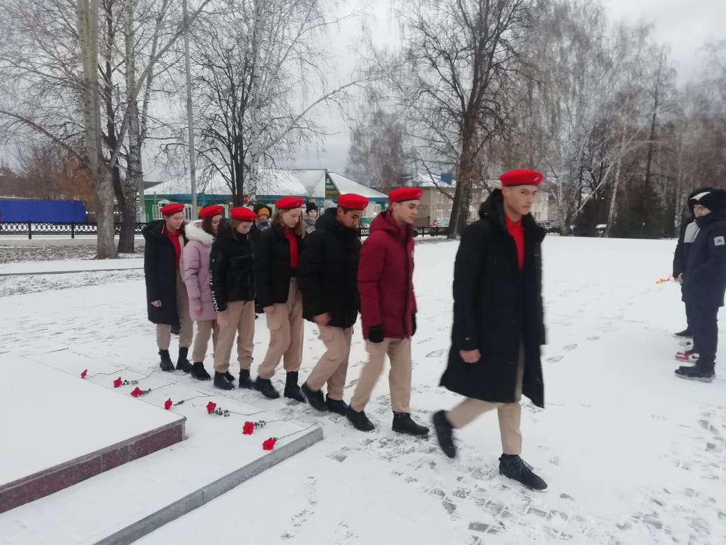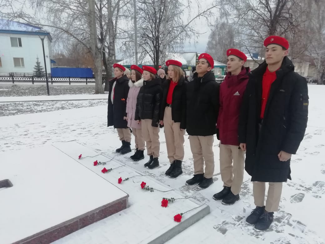 Юнармейцы возложили цветы.