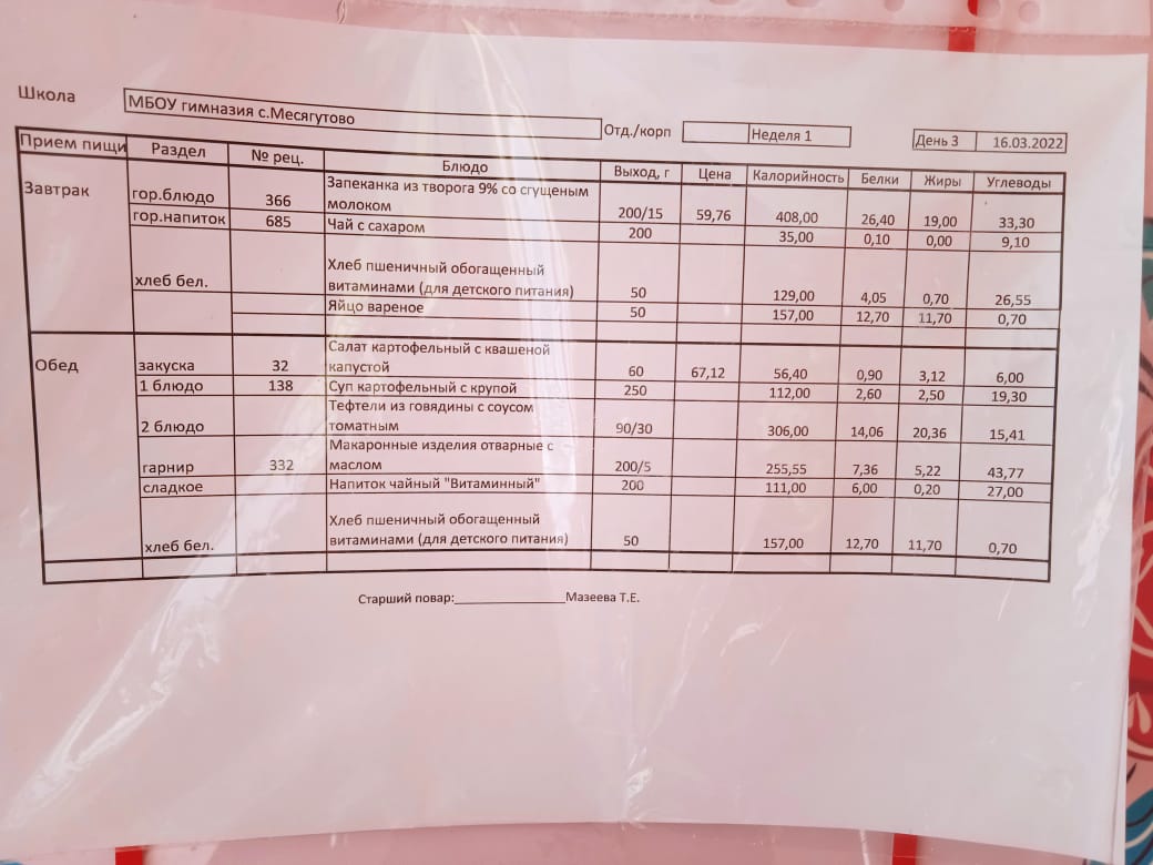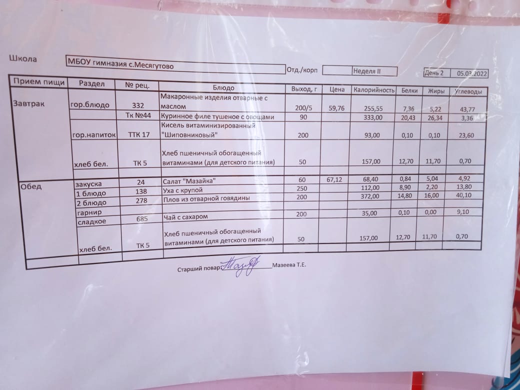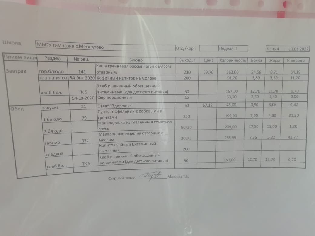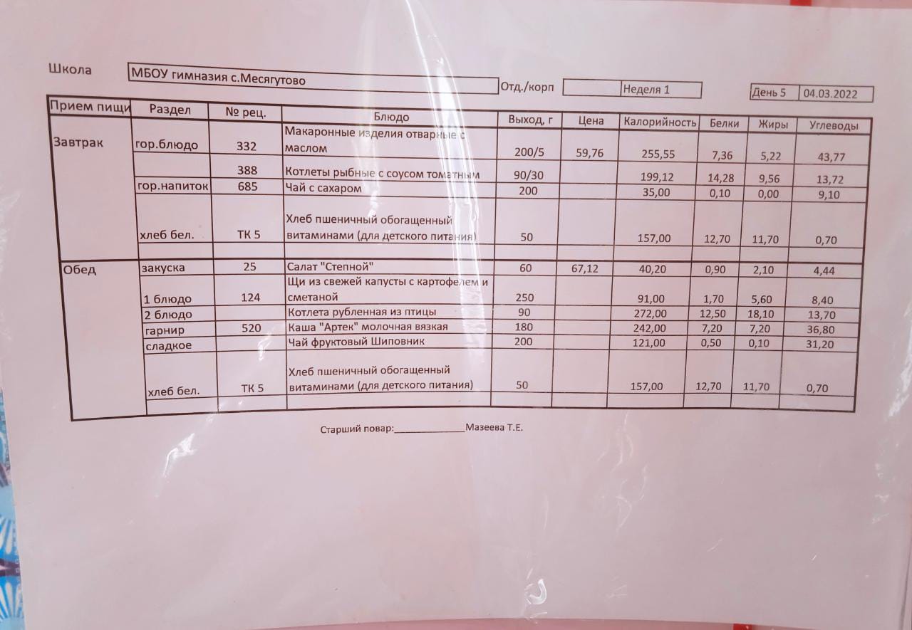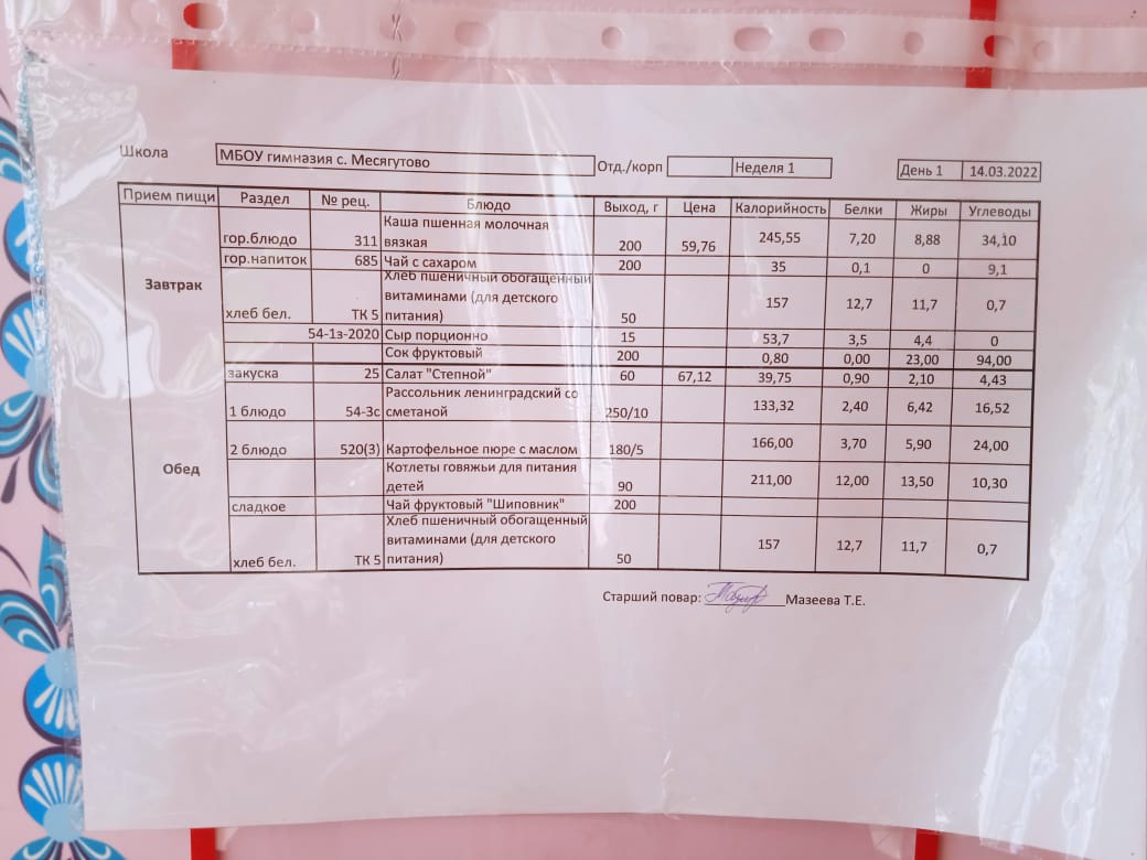 Утвержденное ежедневное меню и фото