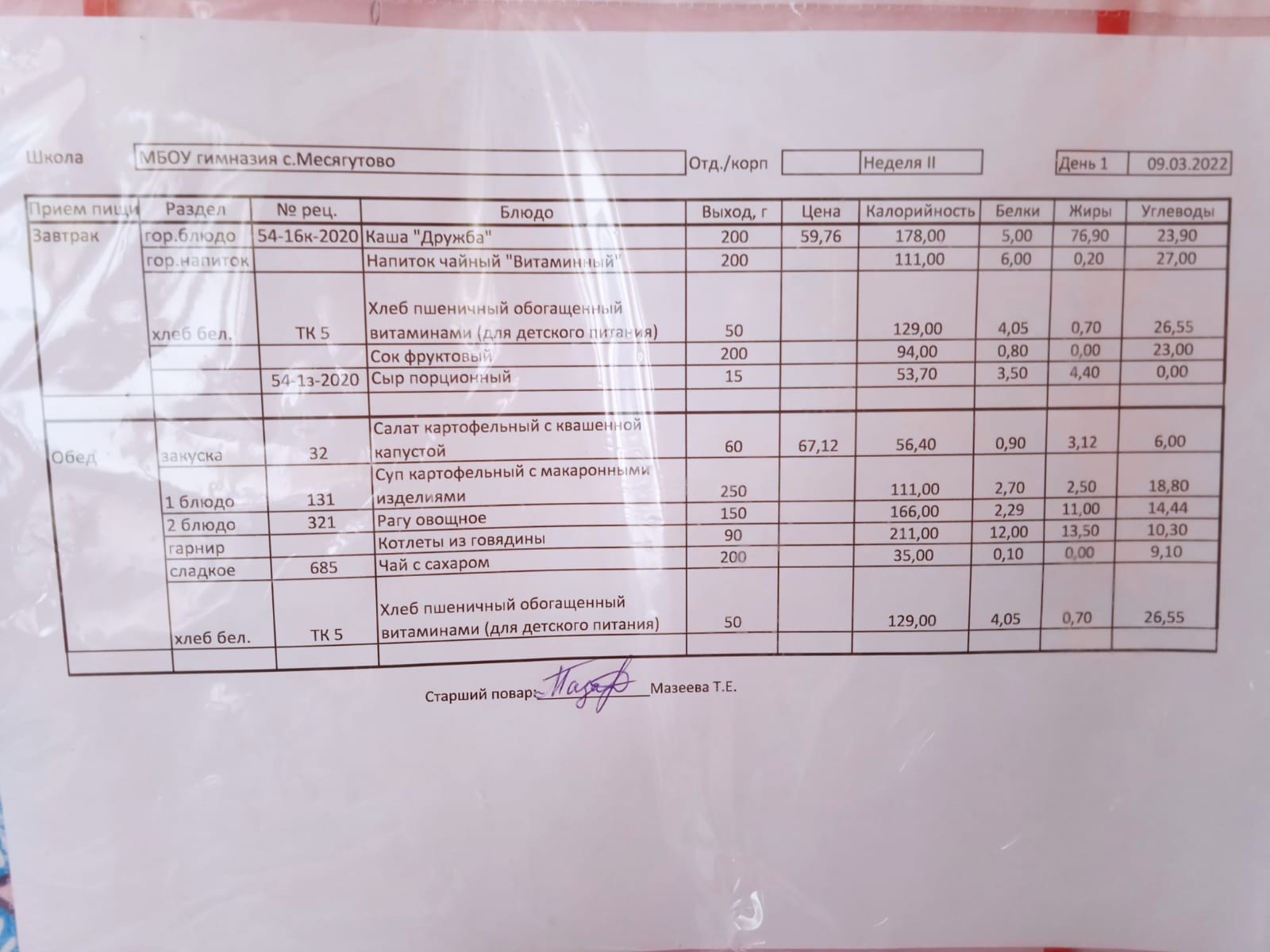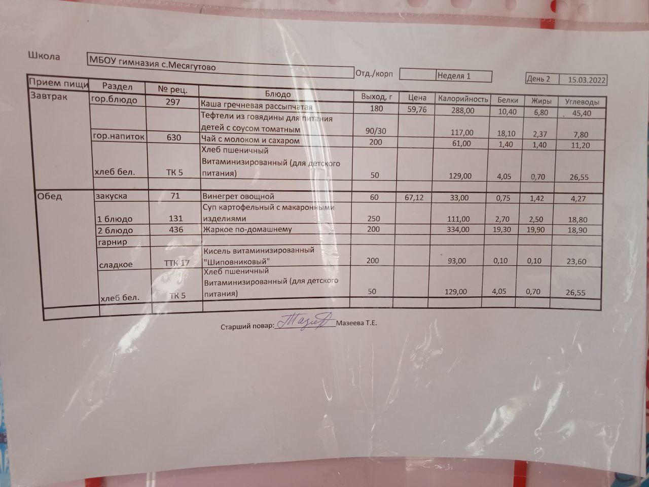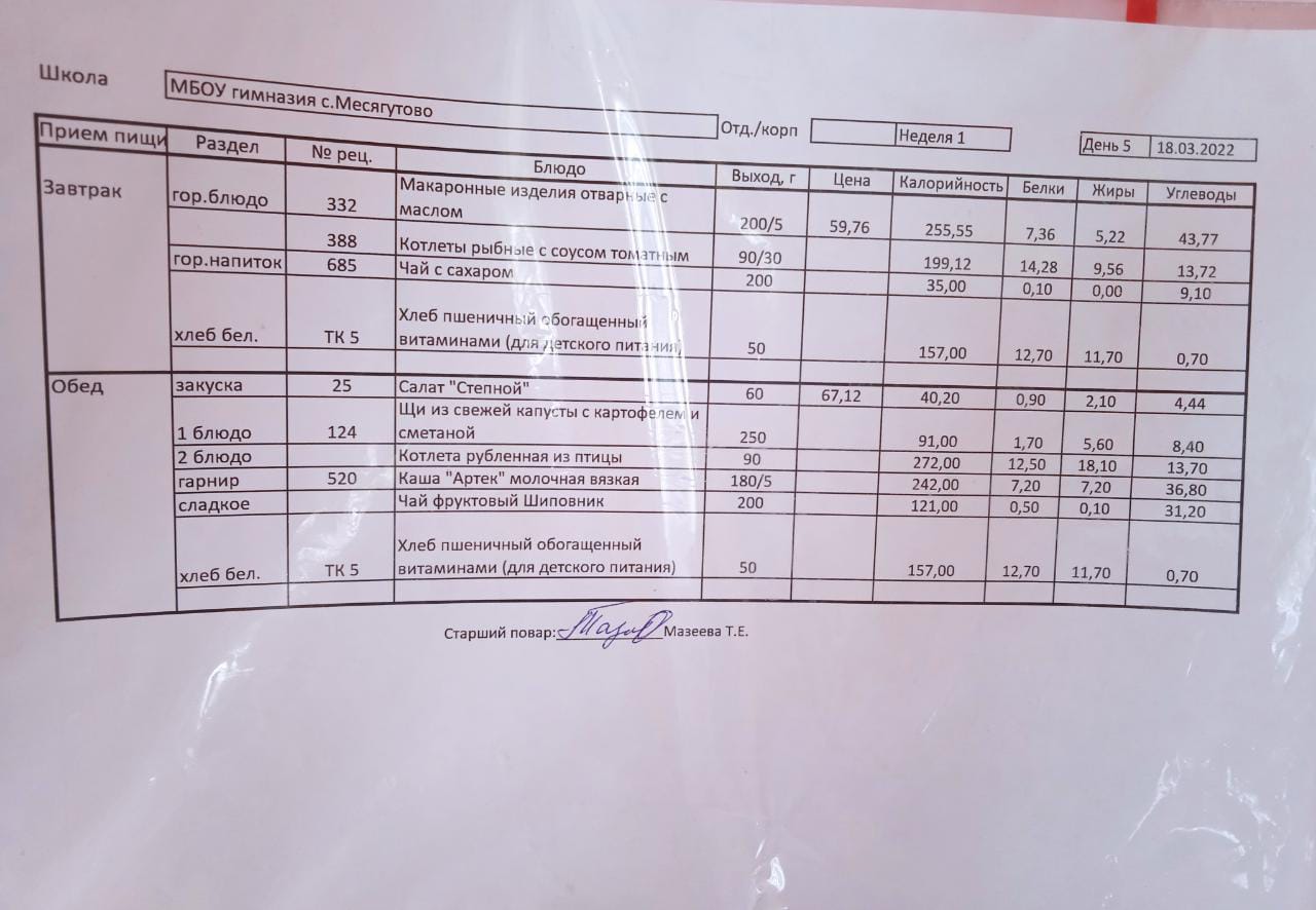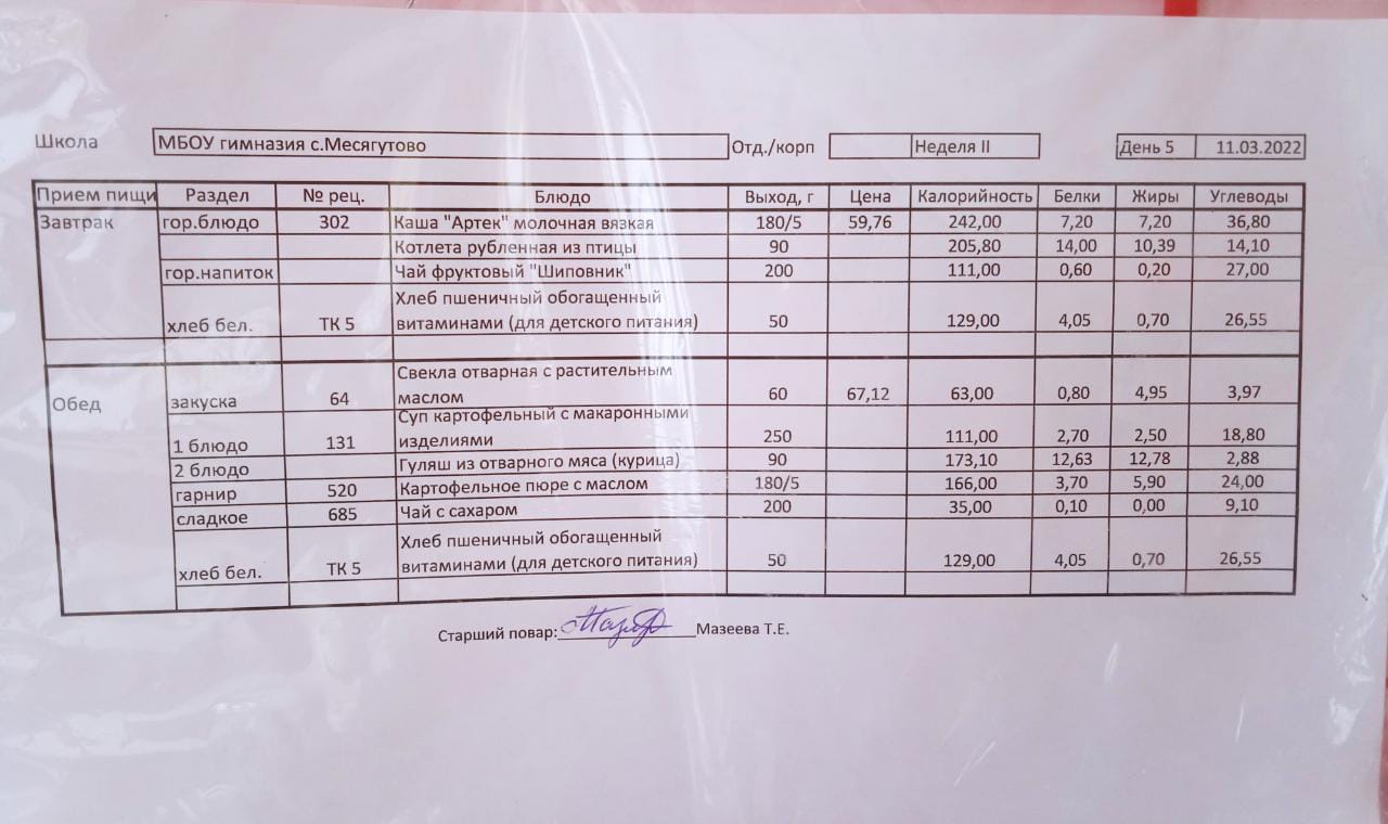 Утвержденное ежедневное меню и фото