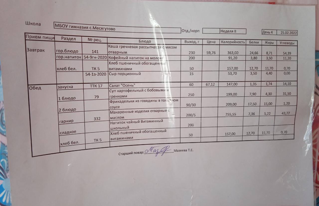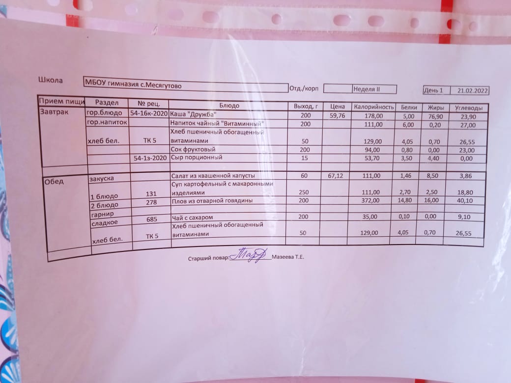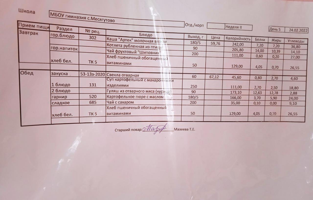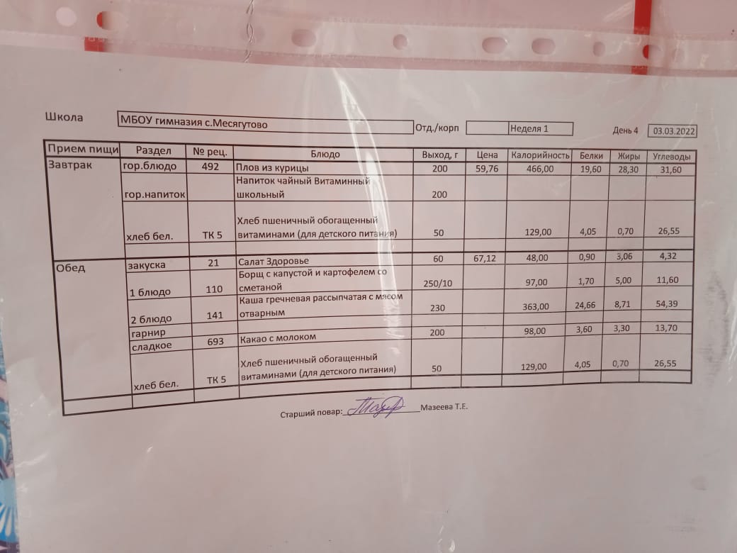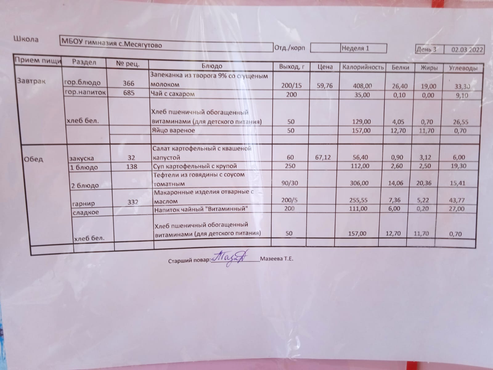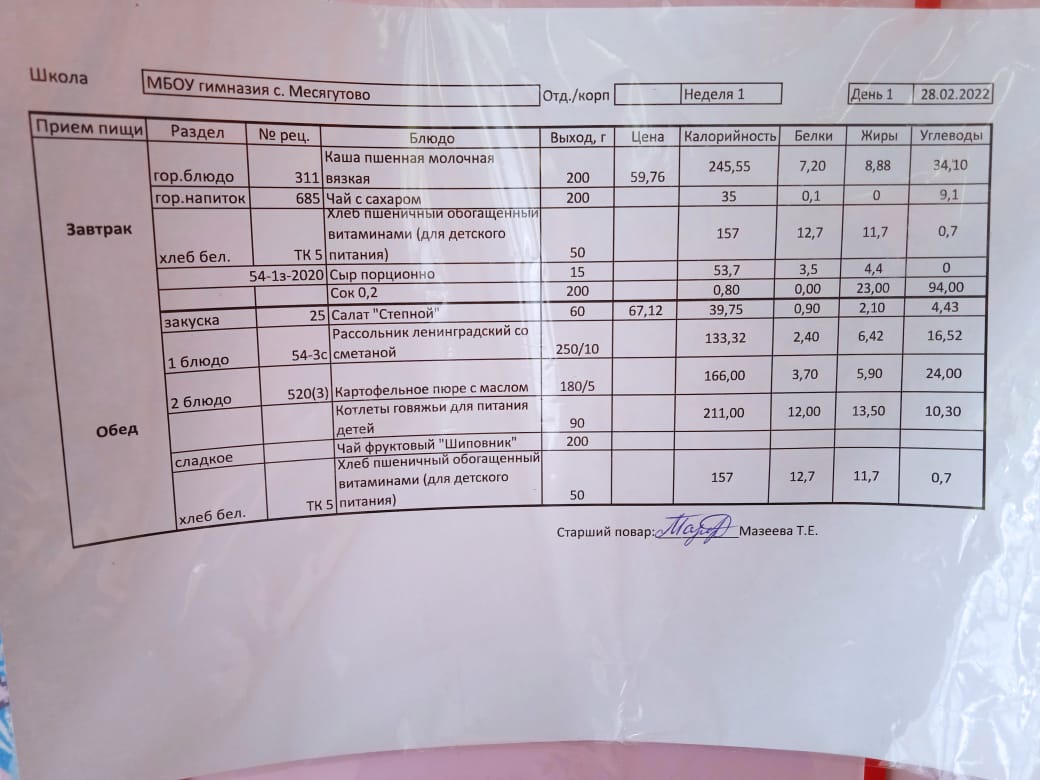 Утвержденное 10-ти дневное меню для всех возрастных и льготных групп обучающихся
