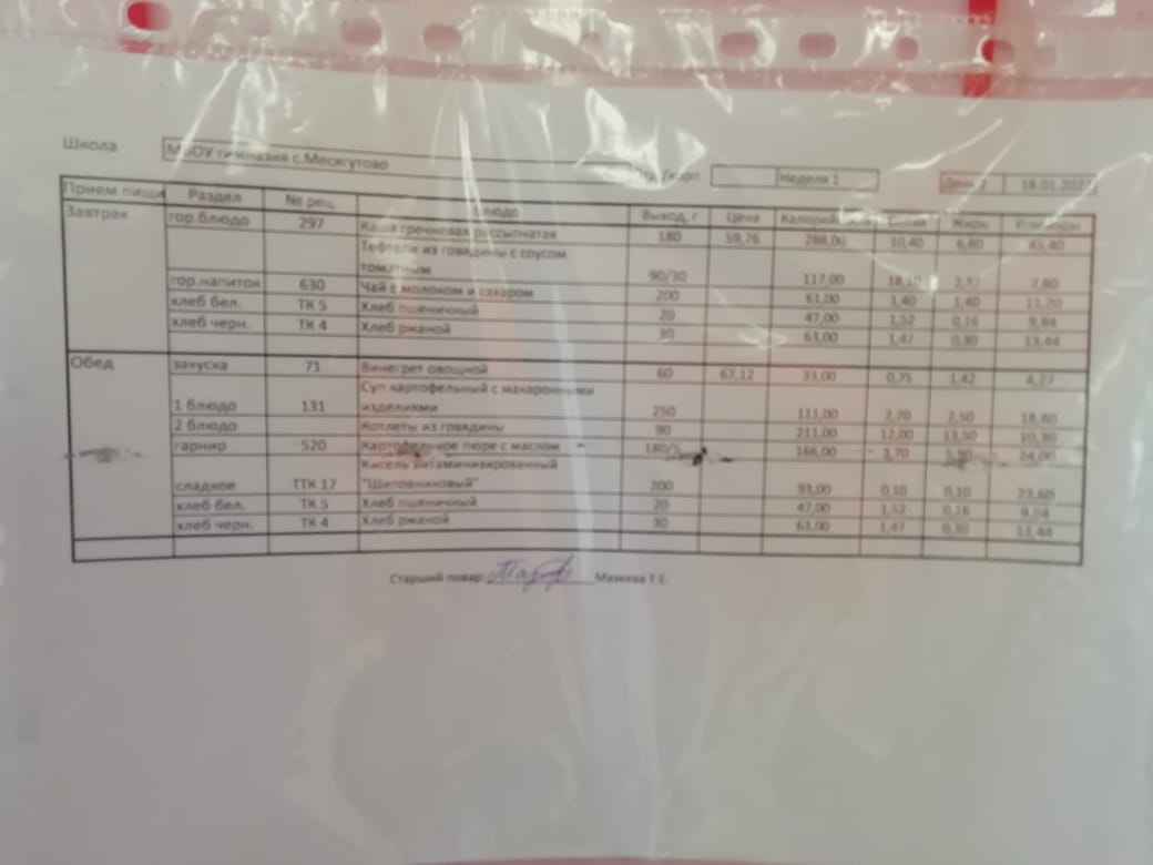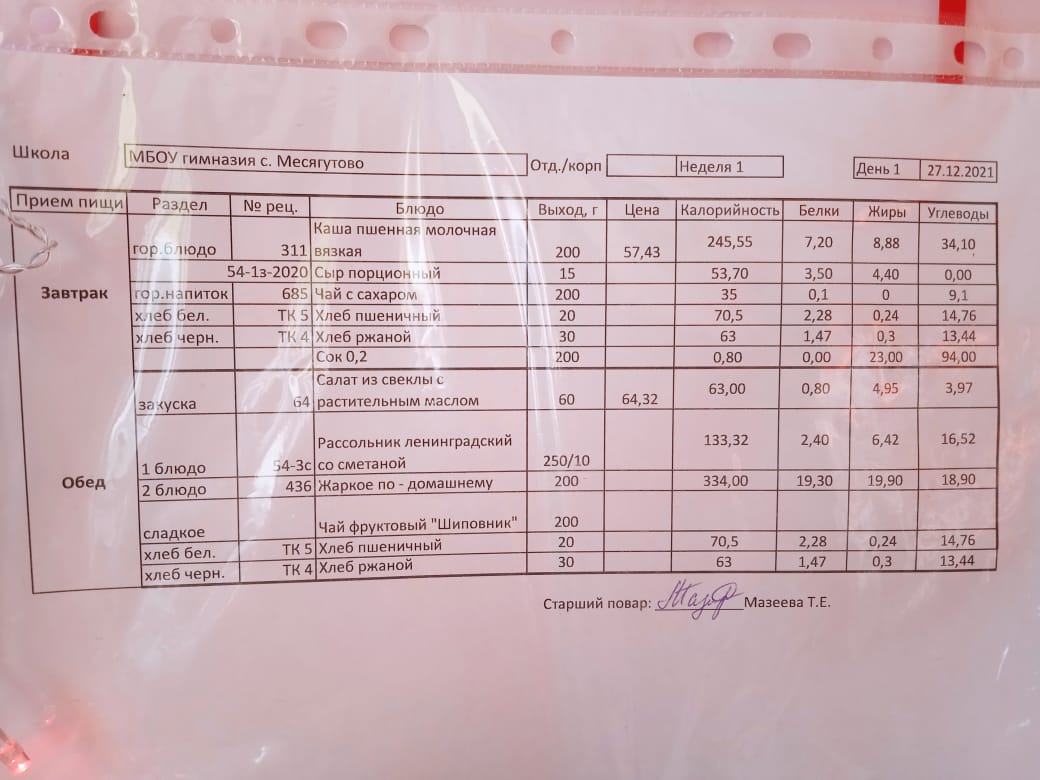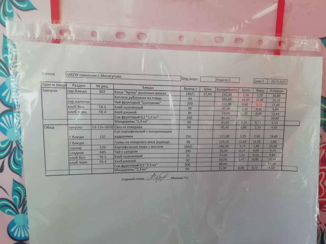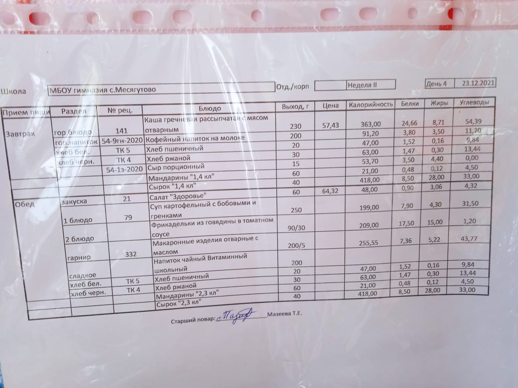 Утвержденное ежедневное меню и фото