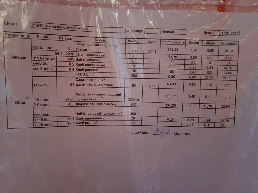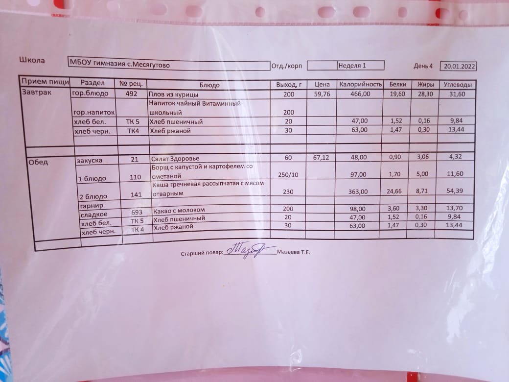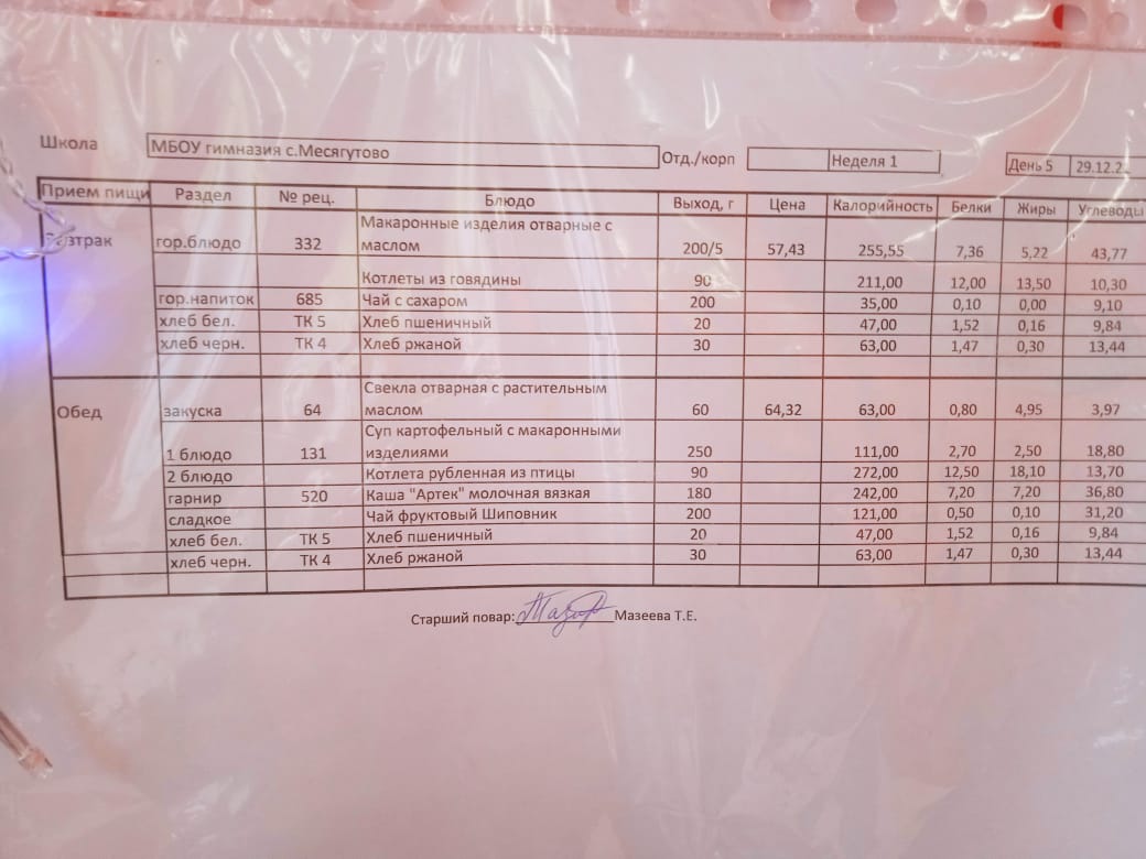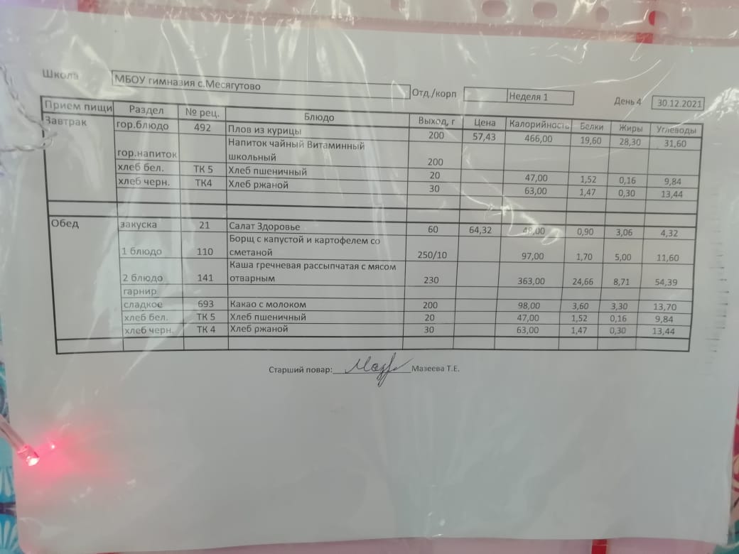 Утвержденное ежедневное меню и фото