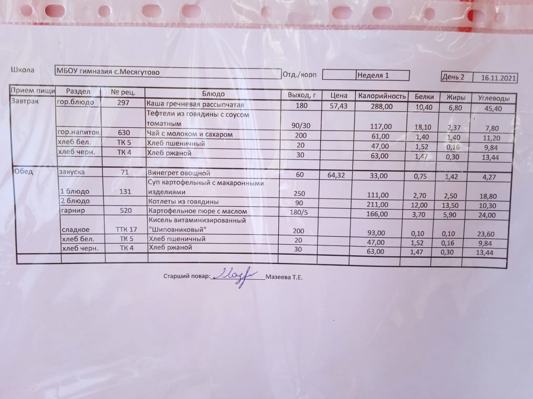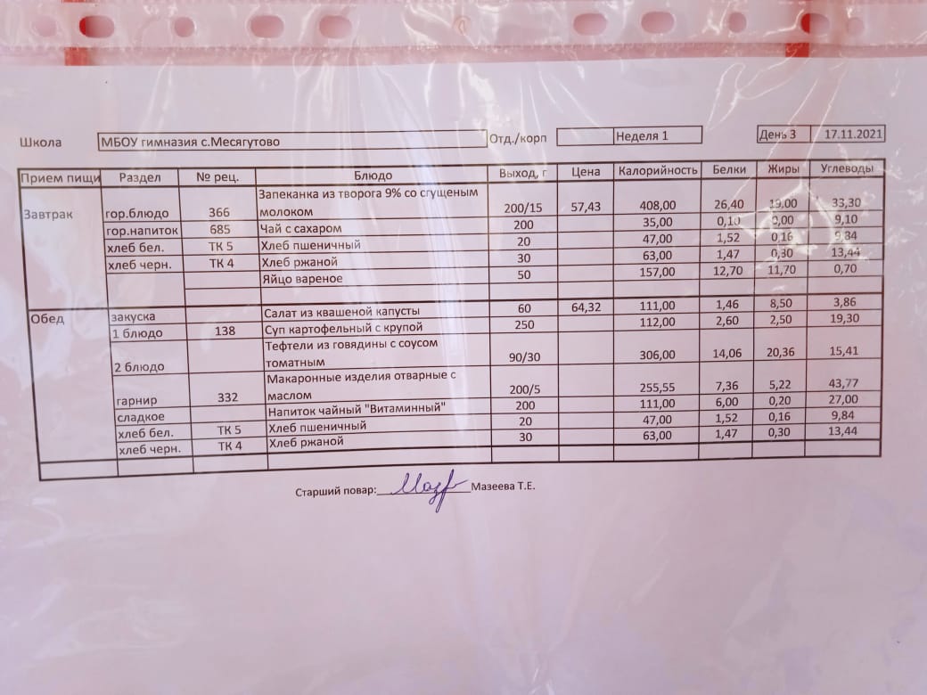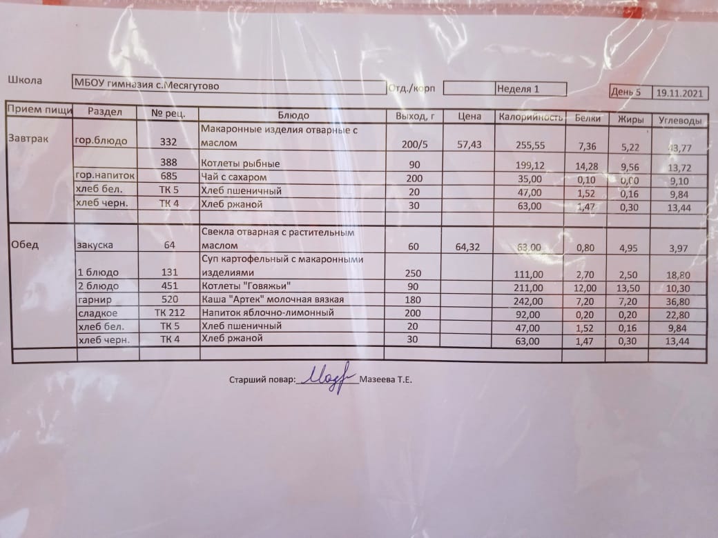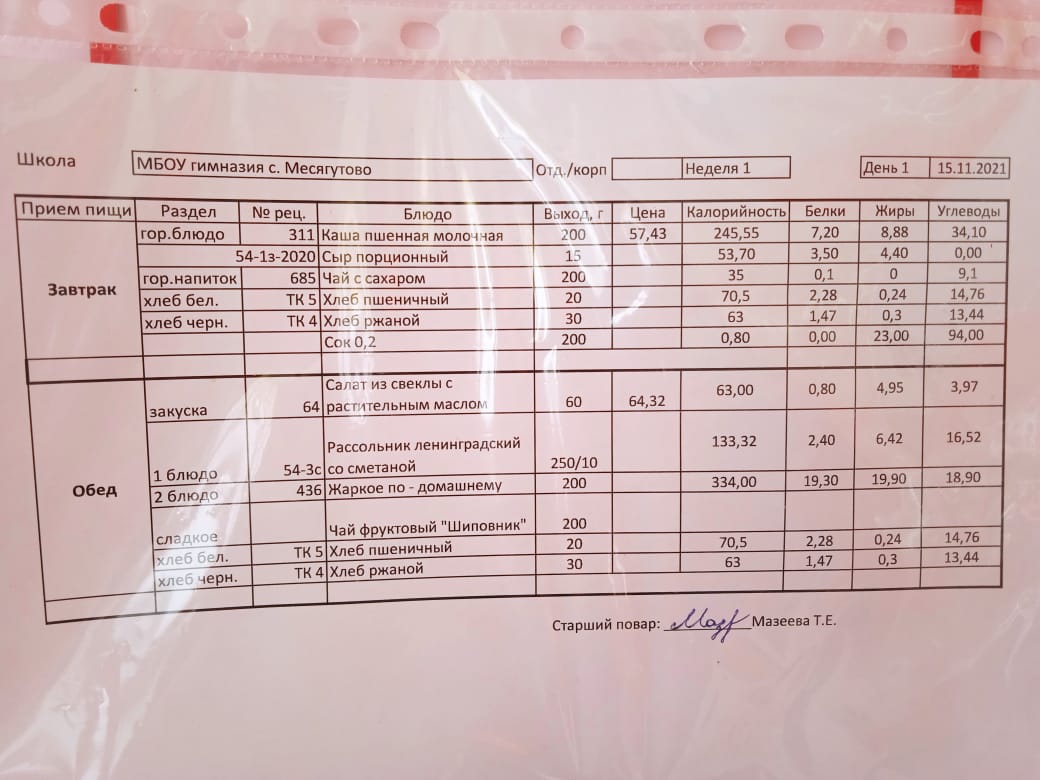 Утвержденное 10-ти дневное меню для всех возрастных и льготных групп обучающихся