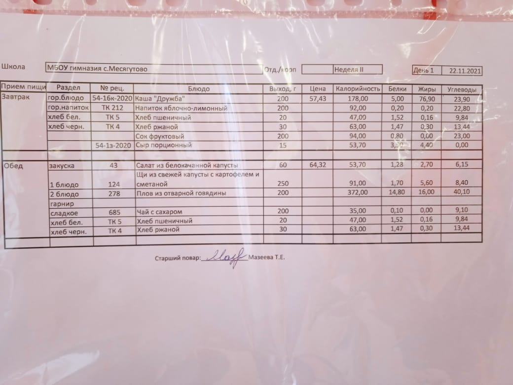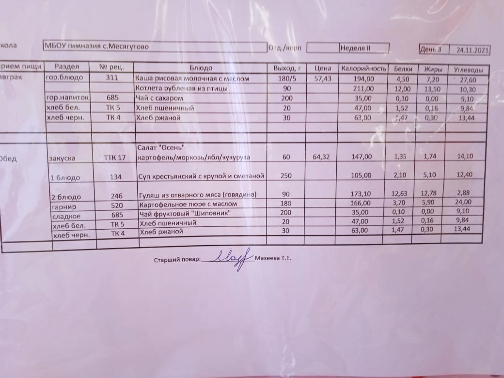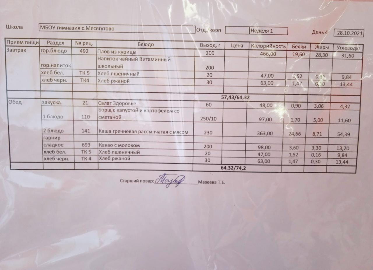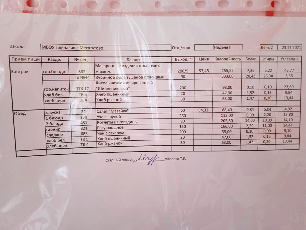 Утвержденное 10-ти дневное меню для всех возрастных и льготных групп обучающихся