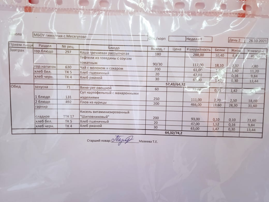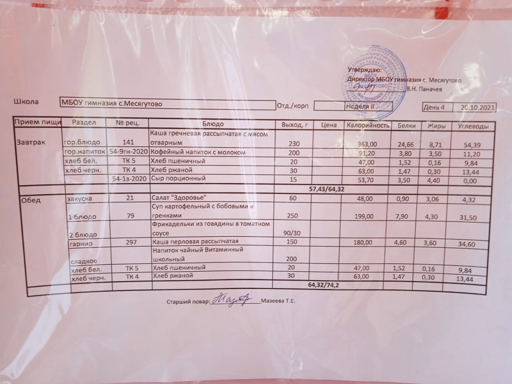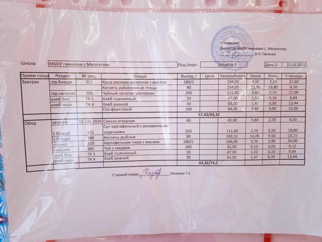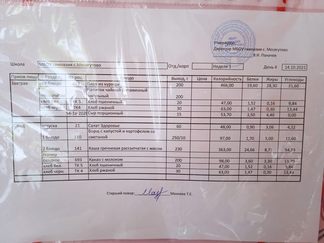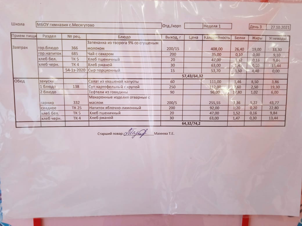 Утвержденное ежедневное меню и фото