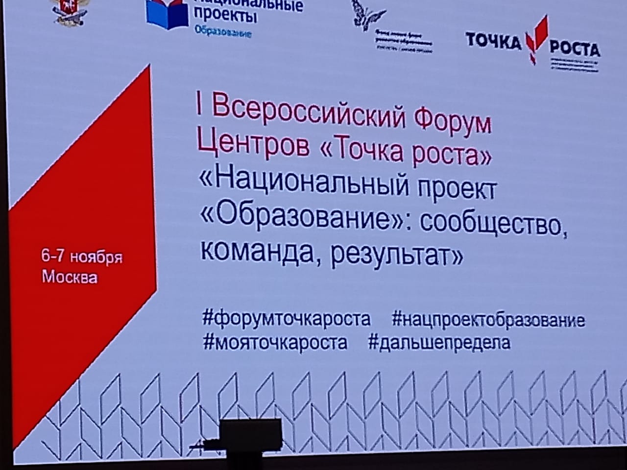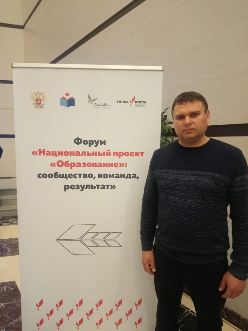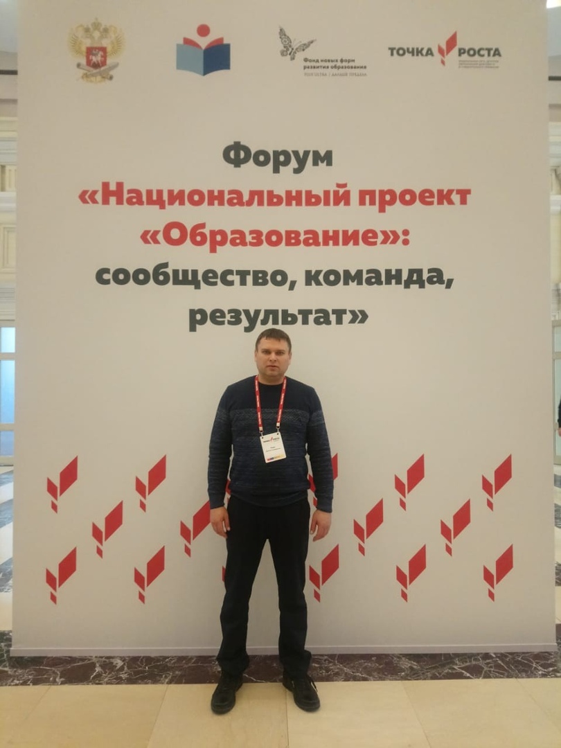 6 -7 ноября в г. Москва в Конгресс Холле "Крокус Экспо". проходит 1 Всероссийский форум Национальный проект "Образование": сообщество, команда, результат. В работе форума участвуют Руководители Центров образования цифрового и гуманитарного профилей "Точка роста", региональные координаторы Федерального проекта" Современная школа" национального проекта "Образование" - всего более двух тысяч человек. Нашу школу представляет руководитель Центра "Точка роста" Юдин Дмитрий Владимирович.